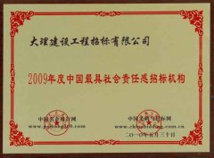 2009年度中國(guó)最具社會(huì)責(zé)任感招標(biāo)機(jī)構(gòu)榮譽(yù)