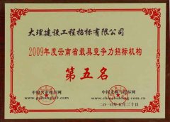 2009年度云南省最具競(jìng)爭(zhēng)力招標(biāo)機(jī)構(gòu)榮譽(yù)